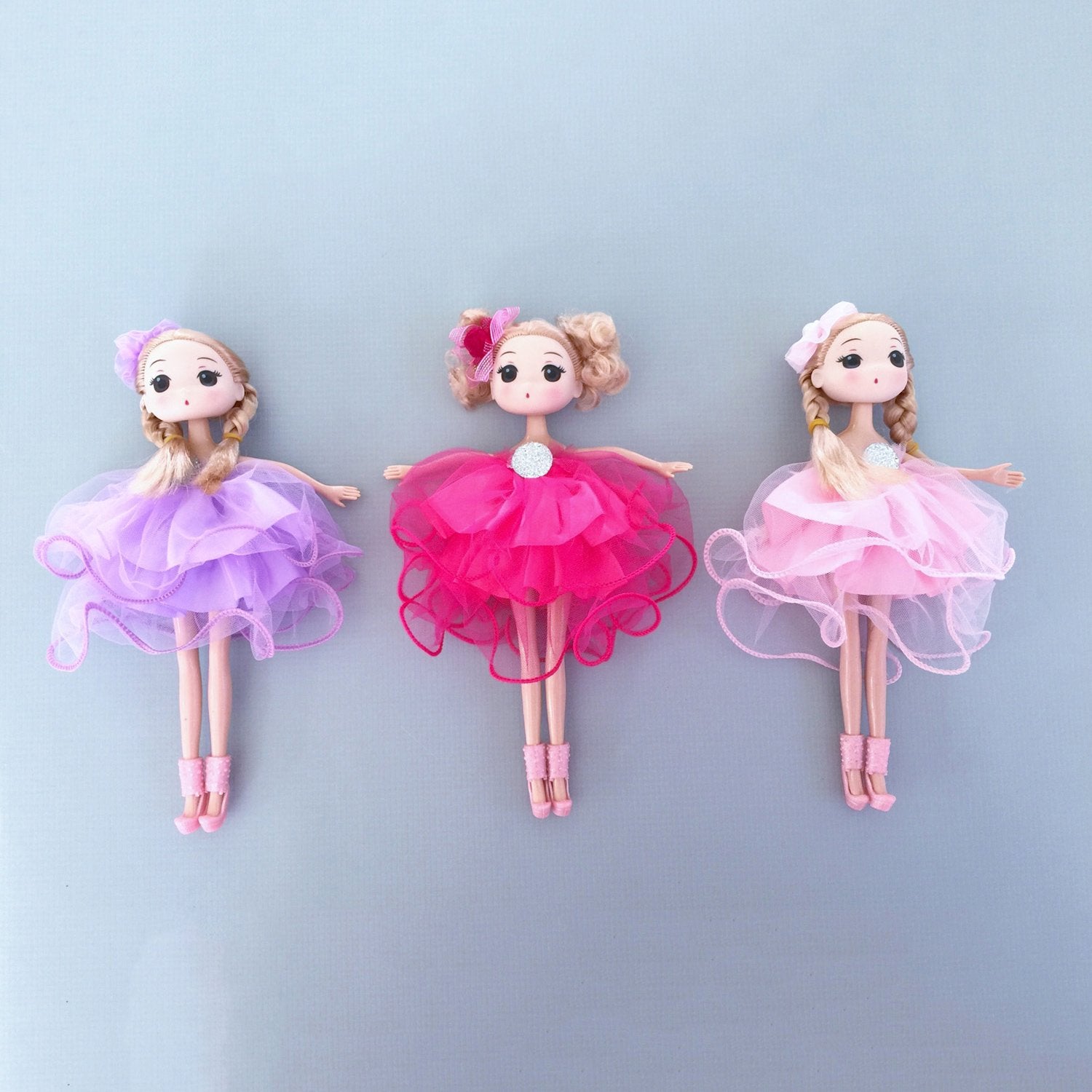 Our enchanting 3-piece play set of little lollipop dolls will provide hours of make-believe fun for your own little princess. Each play set comes in an assortment of vivid, gorgeous colors, pink, hot pink and purple. Our exotic lollipop dolls measure a generous 10" tall and come with flexible arms. Each is made of sturdy plastic/polyester and are age-appropriate for 3+ years. Don't let them get away, order yours today!