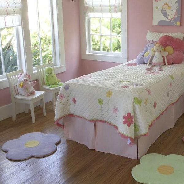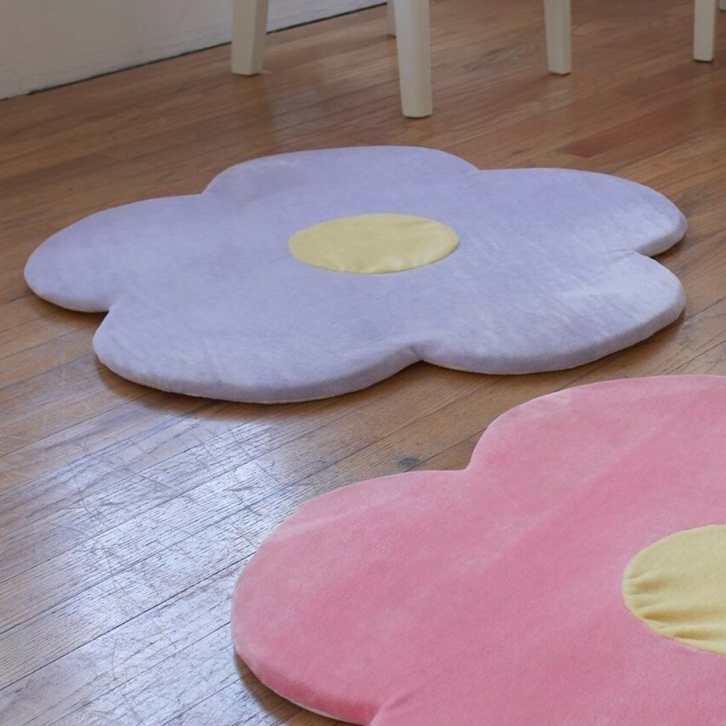 Brighten up her floors with these bight and cheery pink daisy flower rugs. Each is machine washable and has a non-skid backing.Fun and colorful daisy flower rugs perfect for girls room and nursery to completing her rom ensemble. Made of ultra soft boa, durable latex backing. This quality round area rug measures 25" in diameter. You will feel the softness under the toes as you step on to this comfortable and durable rug. Machine washable, gentle cycle, cold water.