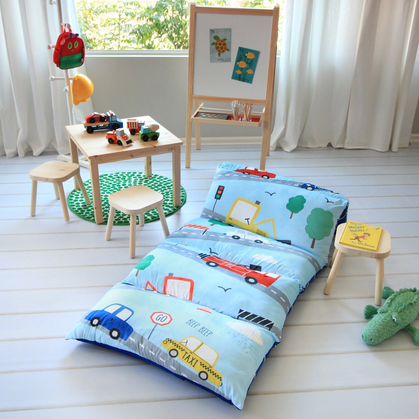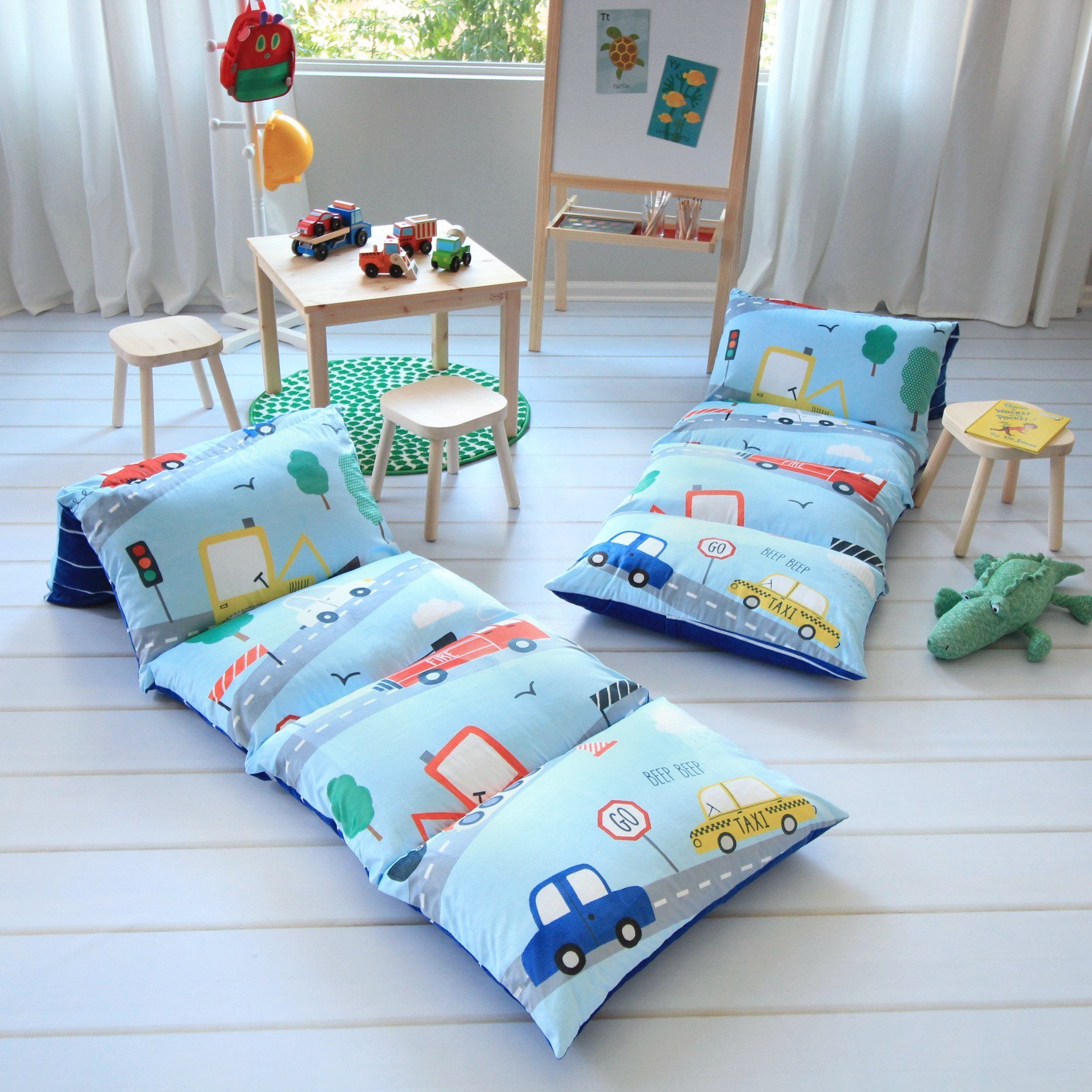 Our lounger seat cover combined with YOUR standard- or king-size pillows will bring fun to their themed car bedroom or playroom. This colorful pillow bed cover can be used at sleepovers, for extra seating or sleeping. Perfect for playing video games or watching favorite TV shows and movies. Durable construction and easy care for extra convenience. Please don't forget to obey all traffic laws!
